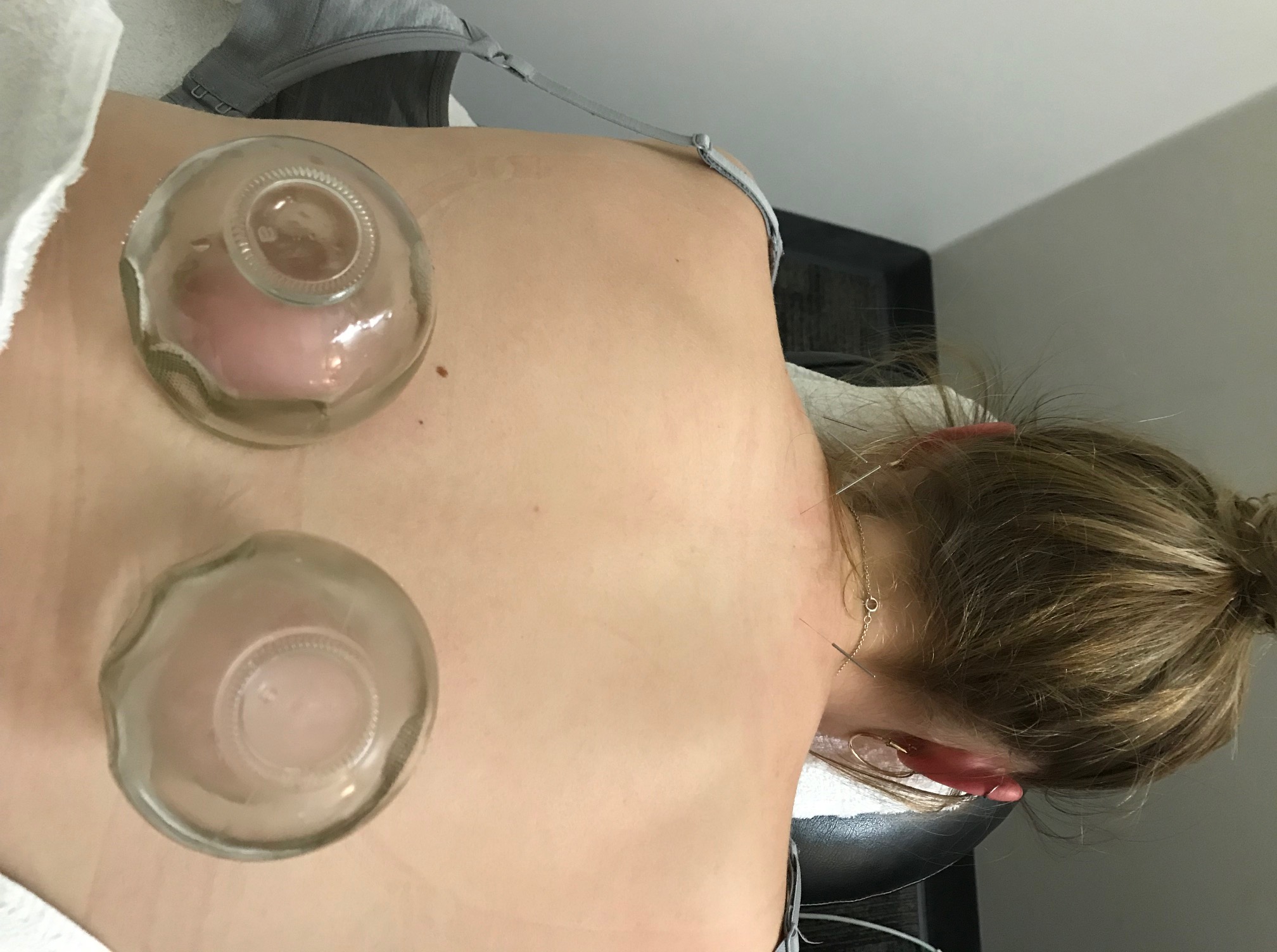 She then “stimulated” the needles, which from my understanding is where she moves them or twirls them around to get the energy to connect again and then she removed them. She added a couple more cups and went in with a deeper massage to loosen my shoulders even more.
